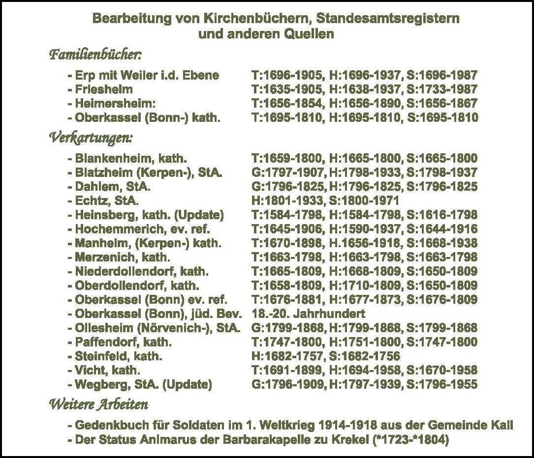 - Der Status Animarum der Barbarakapelle zu Krekel (* 1723-*1804)